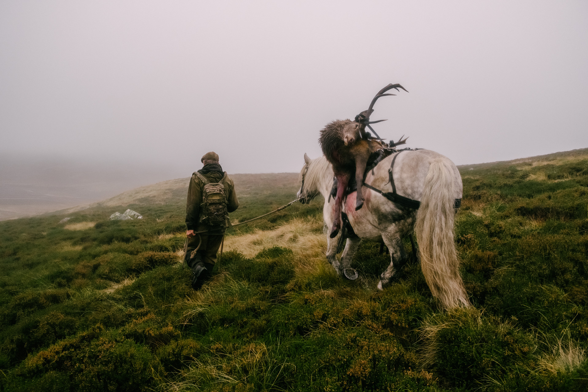 As a photographer, I’ve had my fair share of captivating moments behind the lens. But nothing quite prepared me for the scene that unfolded before me on the Glenprosen Estate in 2021. Picture this: a majestic red stag, its antlers crowned with the wisdom of centuries, being carried off by a humble pony. It was a moment frozen in time—a collision of wild beauty and domestic simplicity.